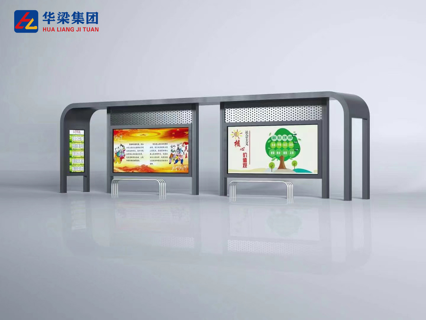 Cruach fós an t-ábhar struchtúrach is fearr le haghaidh frámaí foscadh bus áit a bhfuil uas-neart agus saol seirbhíse fada ag teastáil. Soláthraíonn cruach ghalbhánuithe te-tumtha le sciath púdar friotaíocht creimeadh den scoth agus is féidir é a shonrú i beagnach aon dath chun caighdeáin troscáin uirbeacha a mheaitseáil. Glacann struchtúir chruach ualaí arda gaoithe, cuireann siad in aghaidh tionchar fisiceach, agus - go ríthábhachtach - is féidir iad a dheisiú: is féidir baill aonair a athsholáthar gan an struchtúr iomlán a dhíchóimeáil. Is iad na príomh-mhíbhuntáistí ná meáchan (a dhéanann difear do loighistic suiteála) agus an gá atá le hiniúchadh tréimhsiúil ar shláine an bhrataithe chun creimeadh a chosc ag hailt agus imill ghearrtha.
